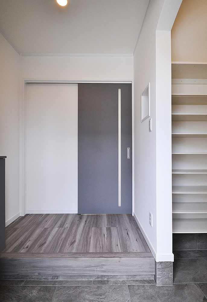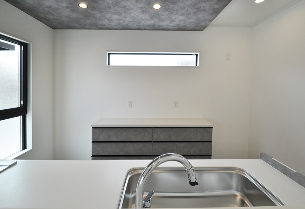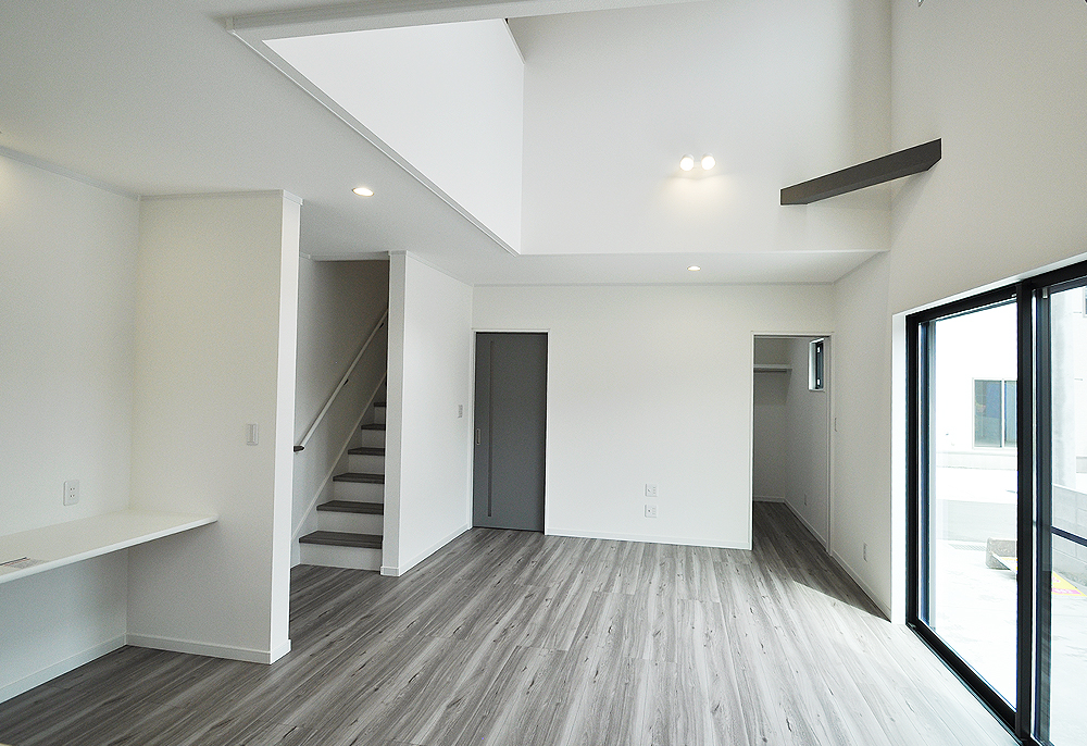 シューズクロークやファミリークローゼット、パントリー、ウォークインクローゼットなど機能的な収納がたくさんあります。リビングの一角にはお子様のリビング学習やパソコンコーナーなどにも丁度いい備付カウンターがあります。