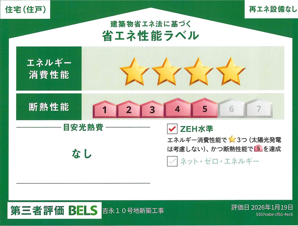 ※ BELS評価(断熱性能等級5、一次エネルギー消費量等級6)