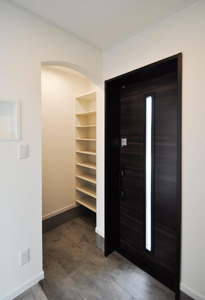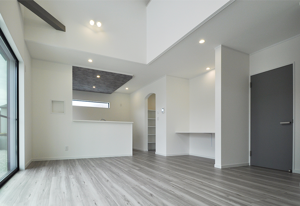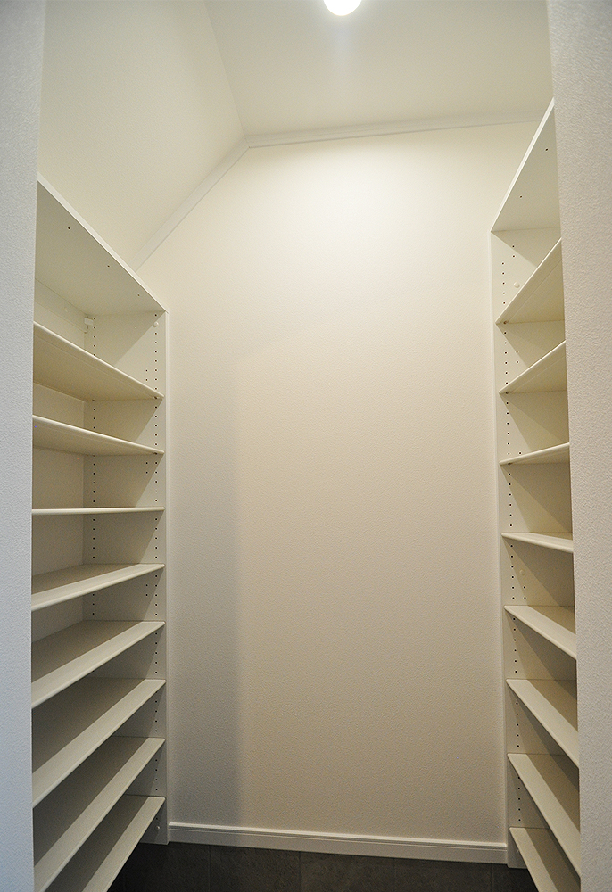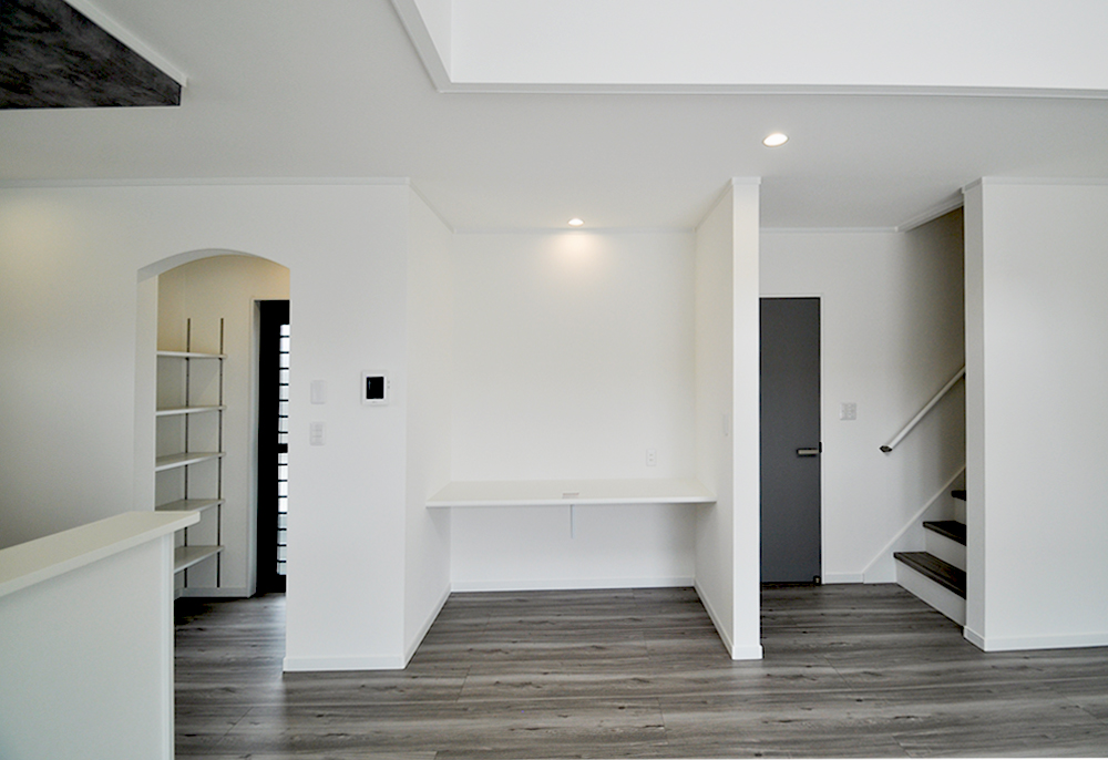 シューズクロークやファミリークローゼット、パントリー、ウォークインクローゼットなど機能的な収納がたくさんあります。リビングの一角にはお子様のリビング学習やパソコンコーナーなどにも丁度いい備付カウンターがあります。