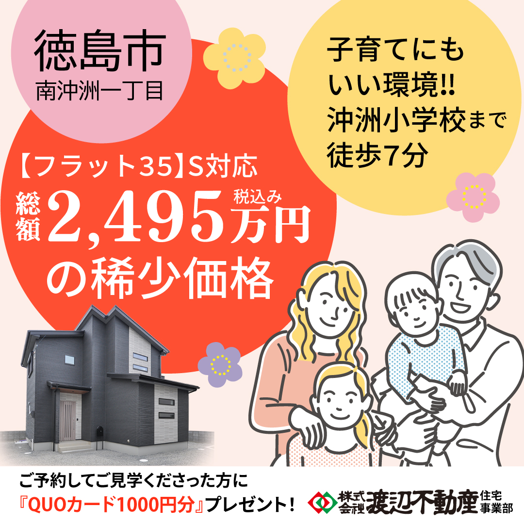 あなたの校区にある省エネ分譲住宅 藍住町富吉豊吉 北島町中村蛇池1号家具付き分譲住宅 徳島市八万町内浜6号地